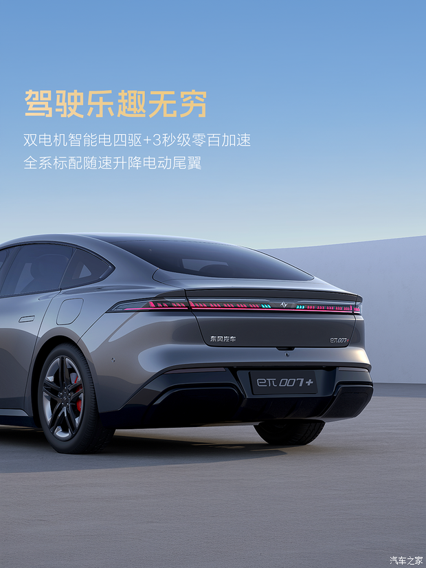 eπ007+最大的亮点在于车顶配备激光雷达,预示着其拥有强大的环境感知能力,在智能辅助驾驶领域将实现重大突破。同时,新车全系标配高通骁龙8295P芯片、配激光雷达、随速升降电动扰流板等,大大提升这款车驾乘感受。动力方面,该车将提供增程版和纯电版车型供选择,前者已完成申报由1.5L发动机+发动机组成的增程系统,发动机最大功率77kW,电机最大功率160kW,并会搭载磷酸铁锂电池;后者则配备双电机,拥有0-100km/h加速3秒级表现。关于新车的更多信息,我们也将持续关注报道。(文/本站 周易)
